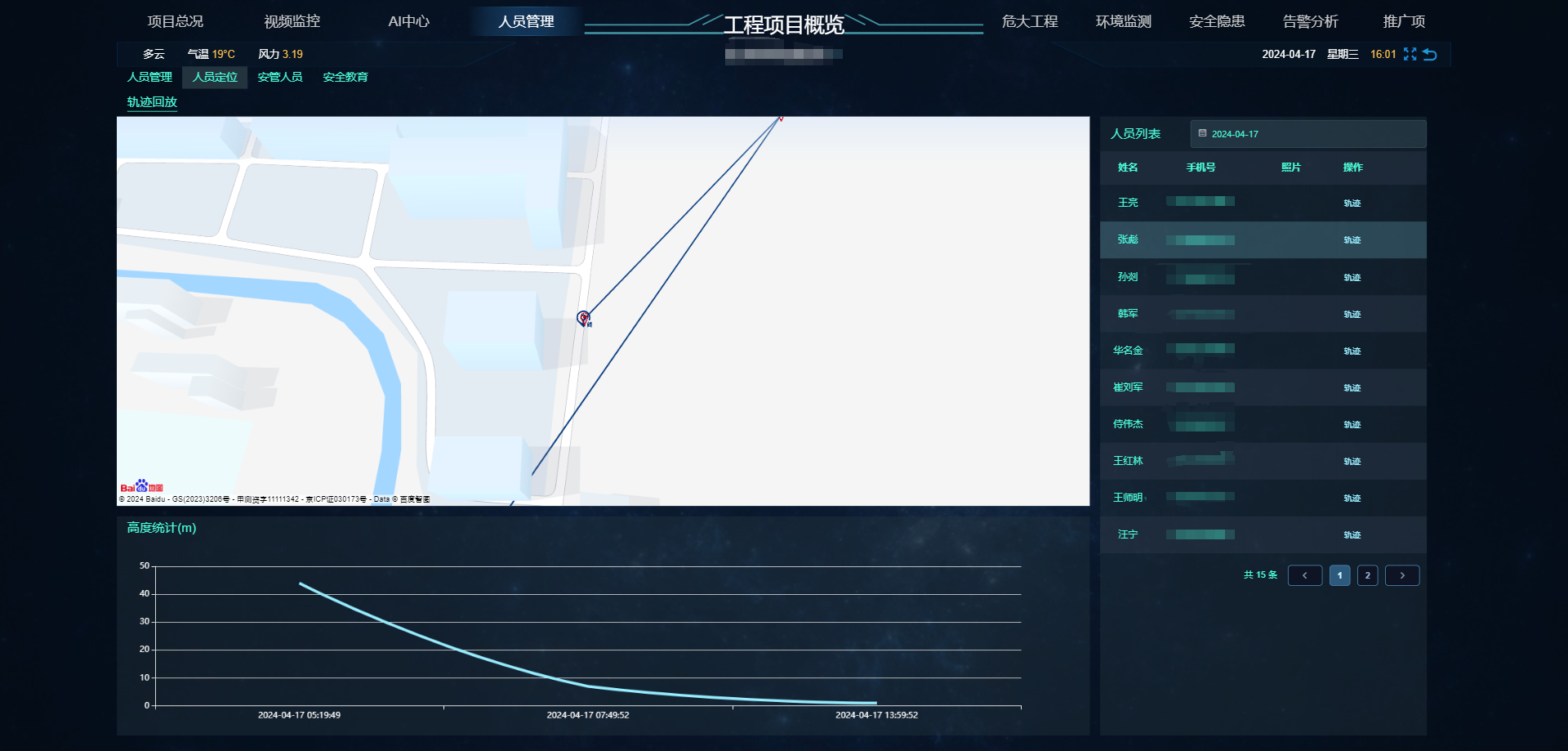 解工人现场分布、个人考勤数据等;